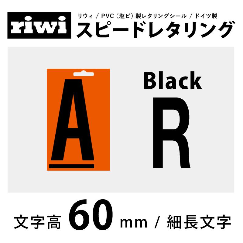 切文字 レタリングシール (60mm) 細長 黒 R (riwi リウィ)